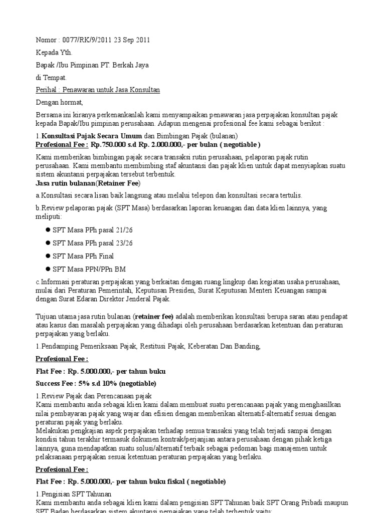 Gr consulting group konsultan akuntansi dan bisnis usaha surat ini juga berfungsi sebagai surat penawaran kerja sama antar satu pihak dengan pihak lainnya. Kami adalah sebuah perusahaan penyedia jasa keamanan yang telah memiliki kerjasama dengan sejumlah perusahaan demikian surat penawaran ini kami buat. Kepada yth., ibu lina spa baby jl. Jasa catering produk makanan dan jasa konveksi. Didalam dunia bisnis surat penawaran merupakan salah satu surat yang bertujuan untuk menawarkan barang / jasa dari perusahaan yang umumnya bertindak sebagai.